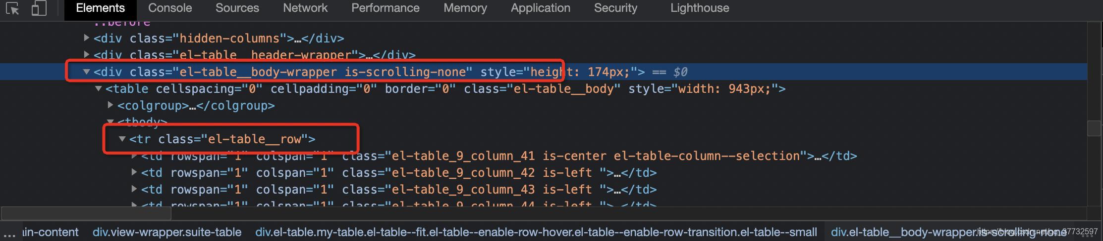 - css定位:div.el-table__body-wrapper.is-scrolling-none tr.el-table__row