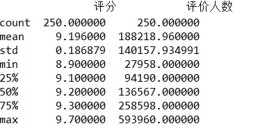 df = pd.DataFrame(pd.read_csv('豆瓣top250.csv'))#数据进行清洗和处理