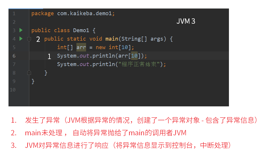Exception in thread "main" java.lang.ArithmeticException: / by zero at ExceptionDemo01.main(ExceptionDemo01.java:6)