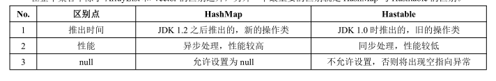 Hashtable 是一个最早的 keyvalue 的操作类,本身是在 JDK 1.0 的时候推出的。其基本操作与 HashMap 是类似的。