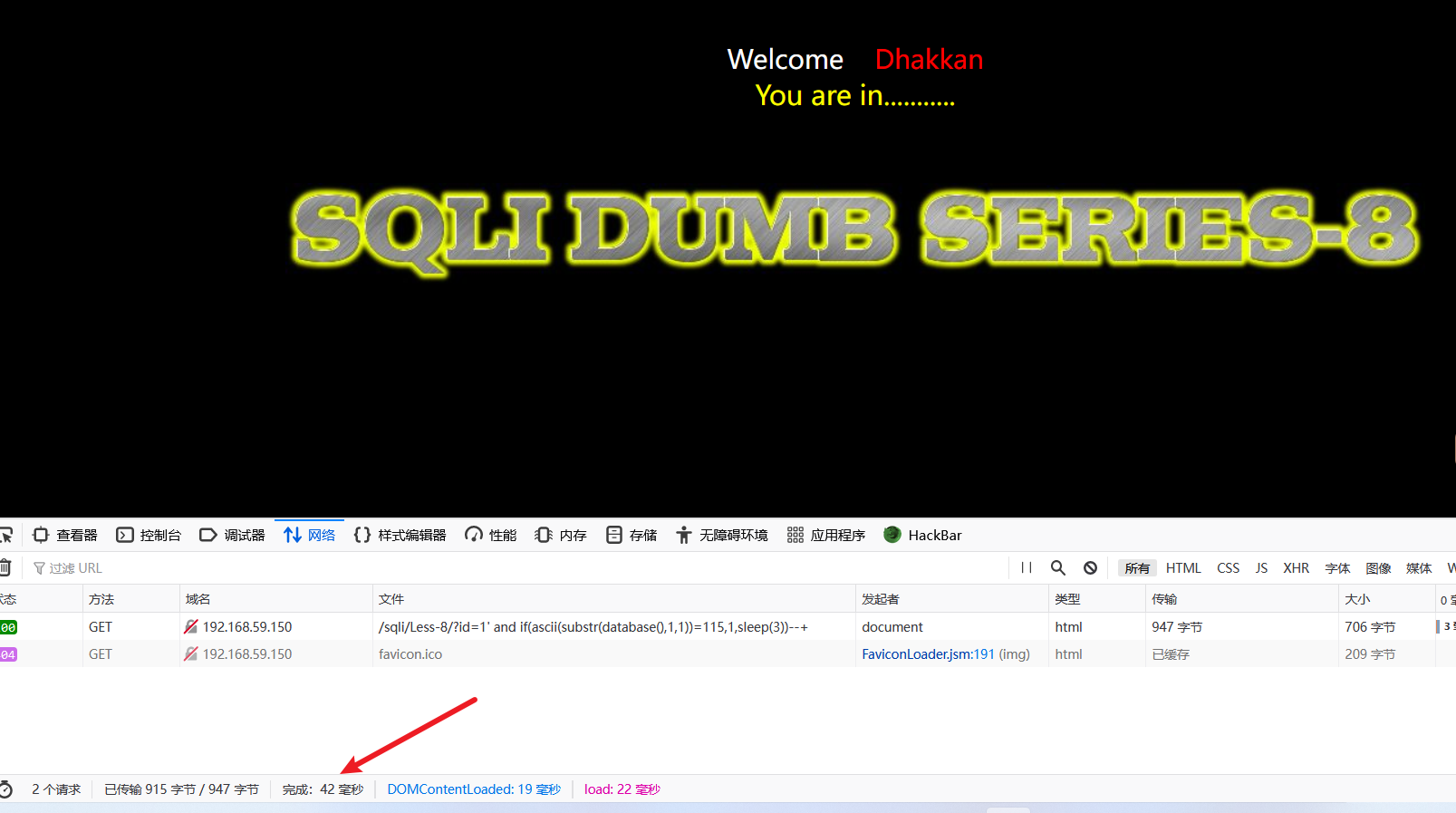 http://192.168.59.150/sqli/Less-8/?id=1' and ascii(substr(database(),1,1))=115--+//显示