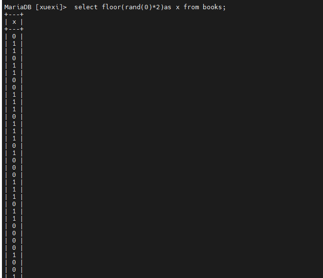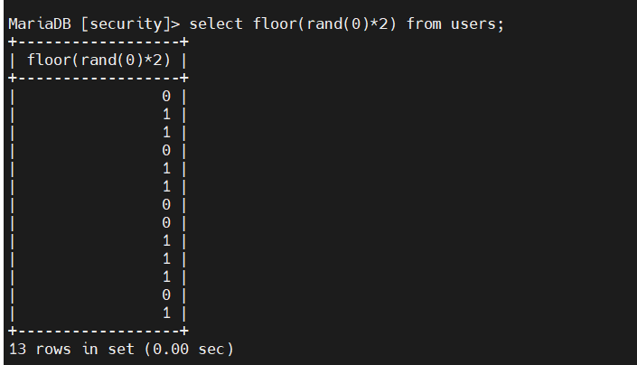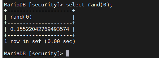 MariaDB [security]> select rand(0);//0理解为随机数的种子