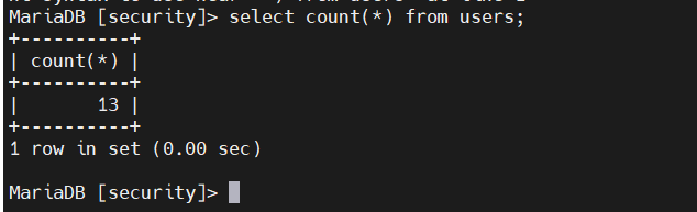 MariaDB [xuexi]> select count(*) from users;//计数用的