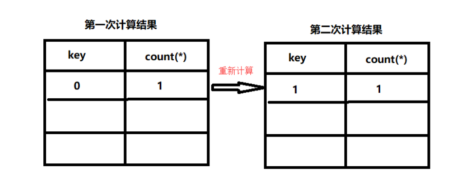查询第一条数据肯定是不存在的,所以直接插入临时表,key=0,count=1(此时