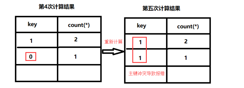 第四次计算 key=0,表中不存在 0 的主键,所以插入数据,插入数据时 floor(rand(0)2)重新计算