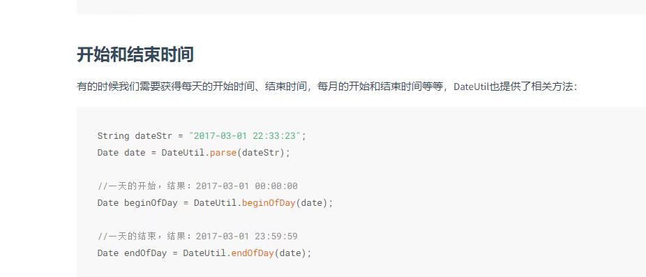 String datestr ="2021-12-01 22:25:30"; Date date =DateUtil.parse(datestr); //一天的开始,结果:2021-12-01 00:00:00 Date beginOfDay=DateUtil.beginOfDay(date); //一天的结束,结果 :2021-12-01 23:59:59 Date endOfDay=DateUtil.endOfDay(date);