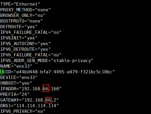 3.如果不一致,输入命令进行修改 vim /etc/sysconfig/network-scripts/ifcfg-ens33