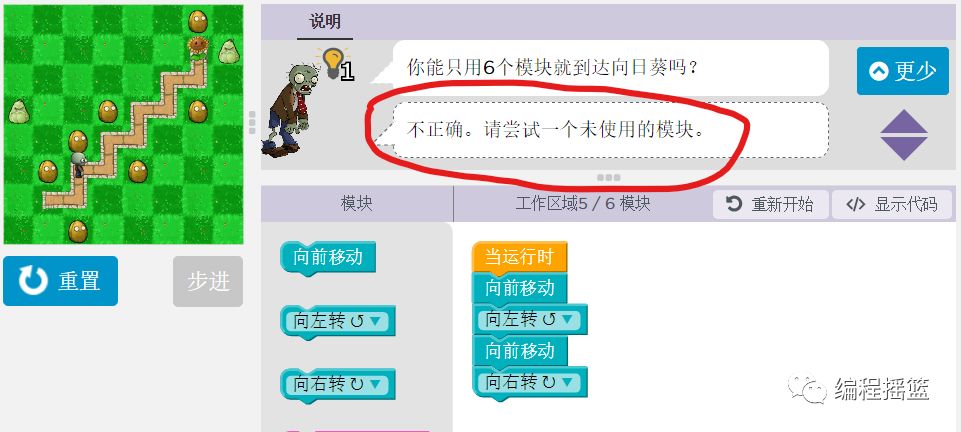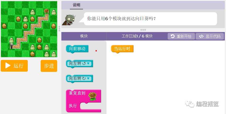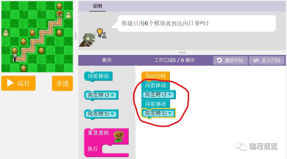 例如,我们点击 2.迷宫 的进度11,就来到了编程界面(不如说是设计界面):