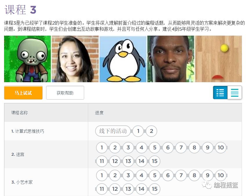 课程分为线下和线上两种。线下活动类似于沙盘推演游戏,具体步骤可以观看视频或者阅读PDF(全英文),需要自行准备道具。“编程摇篮”推荐线上活动,简单明了。