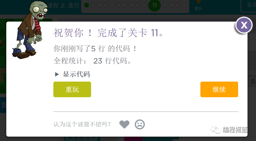怎么样?轻轻松松就入了少儿编程的门!心动不如行动,赶快进入 https://studio.code.org/courses !(由于微信公众号不支持外链,请扫码 )