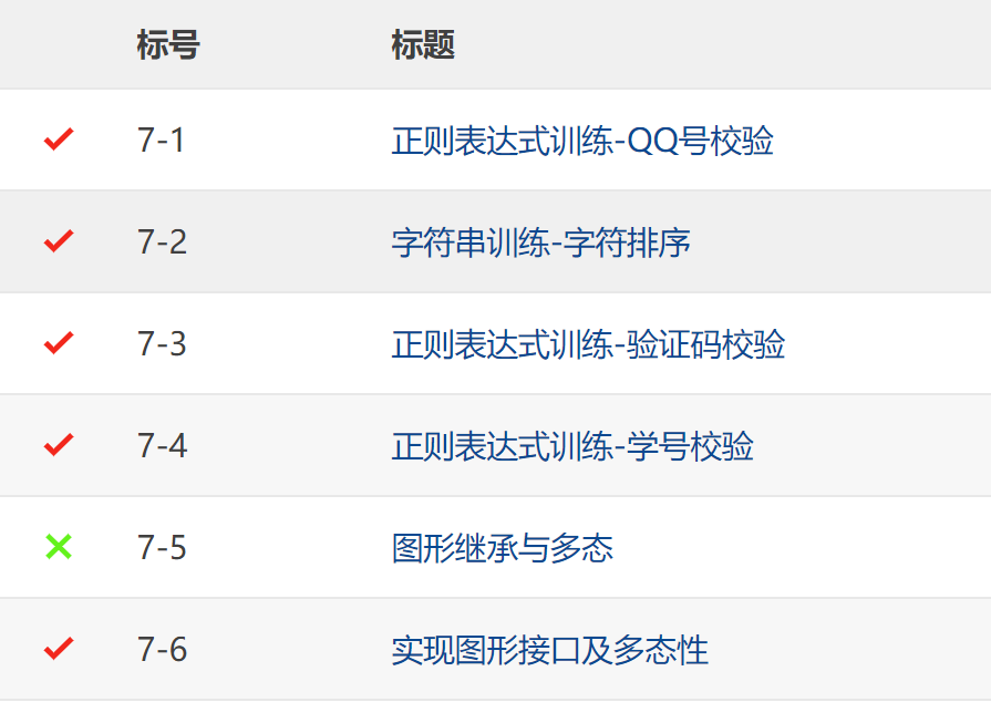 ③ 题目集六共六道题,题目较前两次简单,主要考察了以下内容: