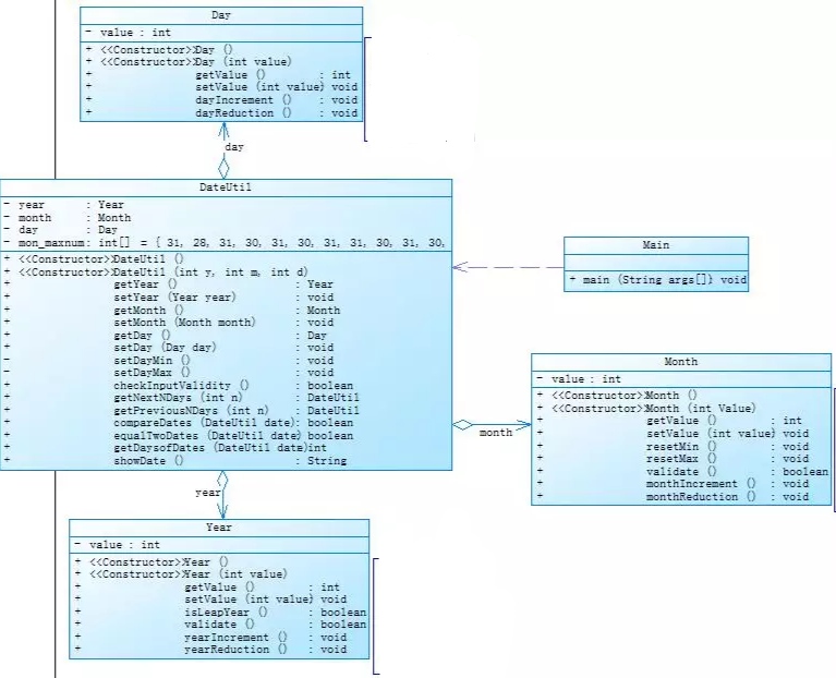 题目描述:设计如下几个类:DateUtil、Year、Month、Day,其中年、月、日的取值范围依然为:year∈[1900,2050] ,month∈[1,12] ,day∈[1,31] 。