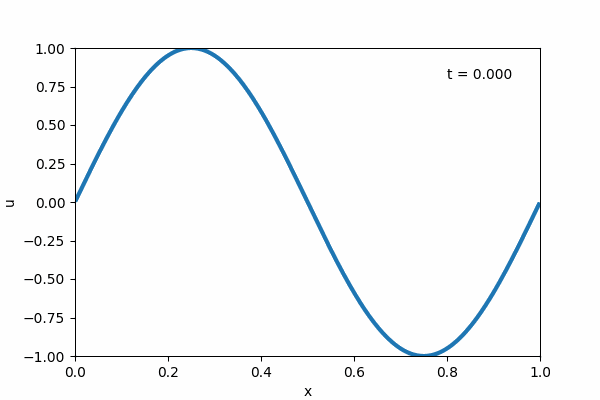 184 cls.ax1.set(xlim=(0, 1), ylim=(-1, 1), xlabel="x", ylabel="u")