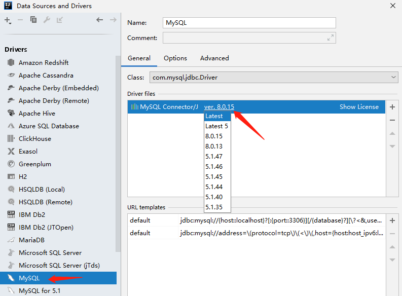在驱动列表里找到 MySQL ,右边Driver files 里,选择一下你需要的版本,保存就可以了。