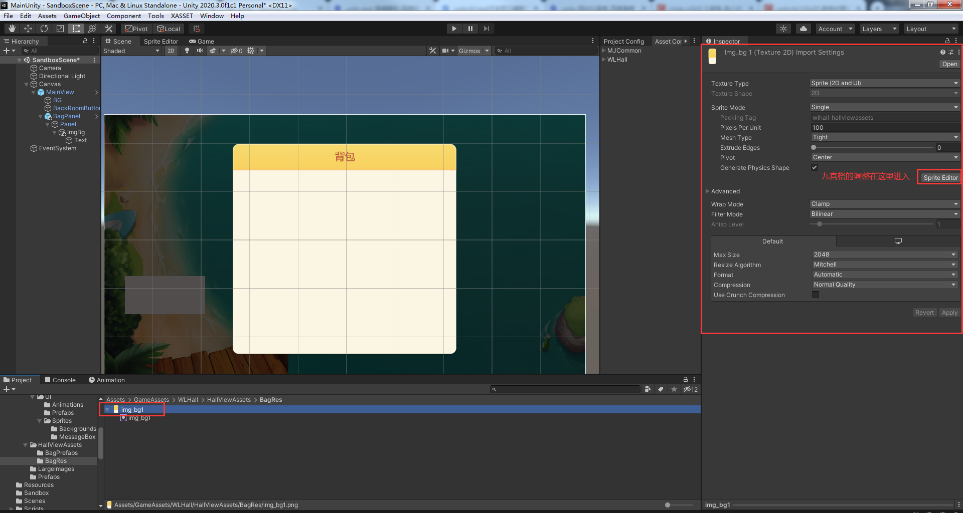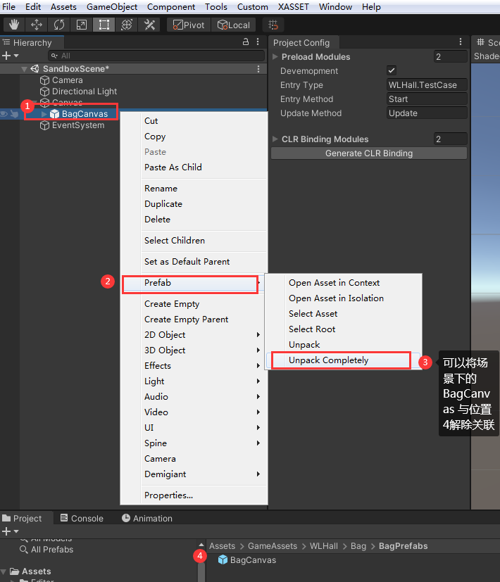 新建一个预制体 BagPrefab 相当于 cocos studio 里的 界面