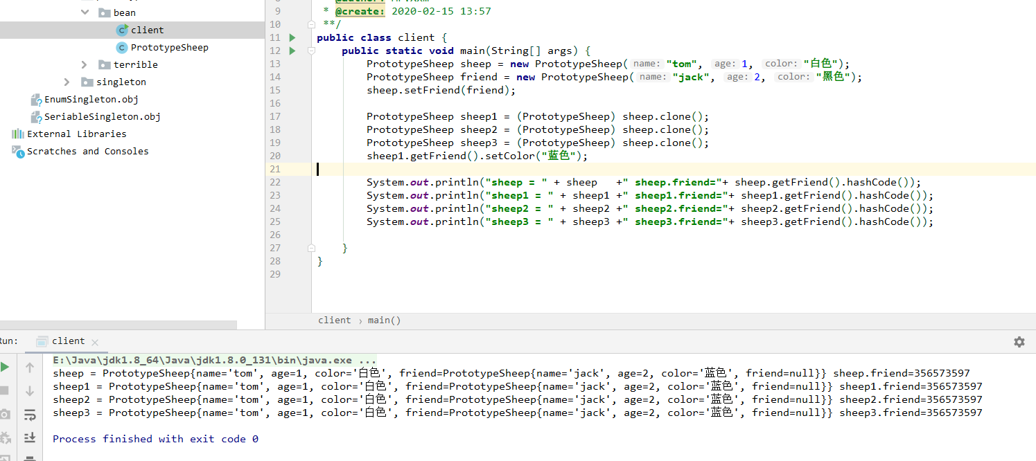 System.out.println("sheep = " + sheep +" sheep.friend="+ sheep.getFriend().hashCode());