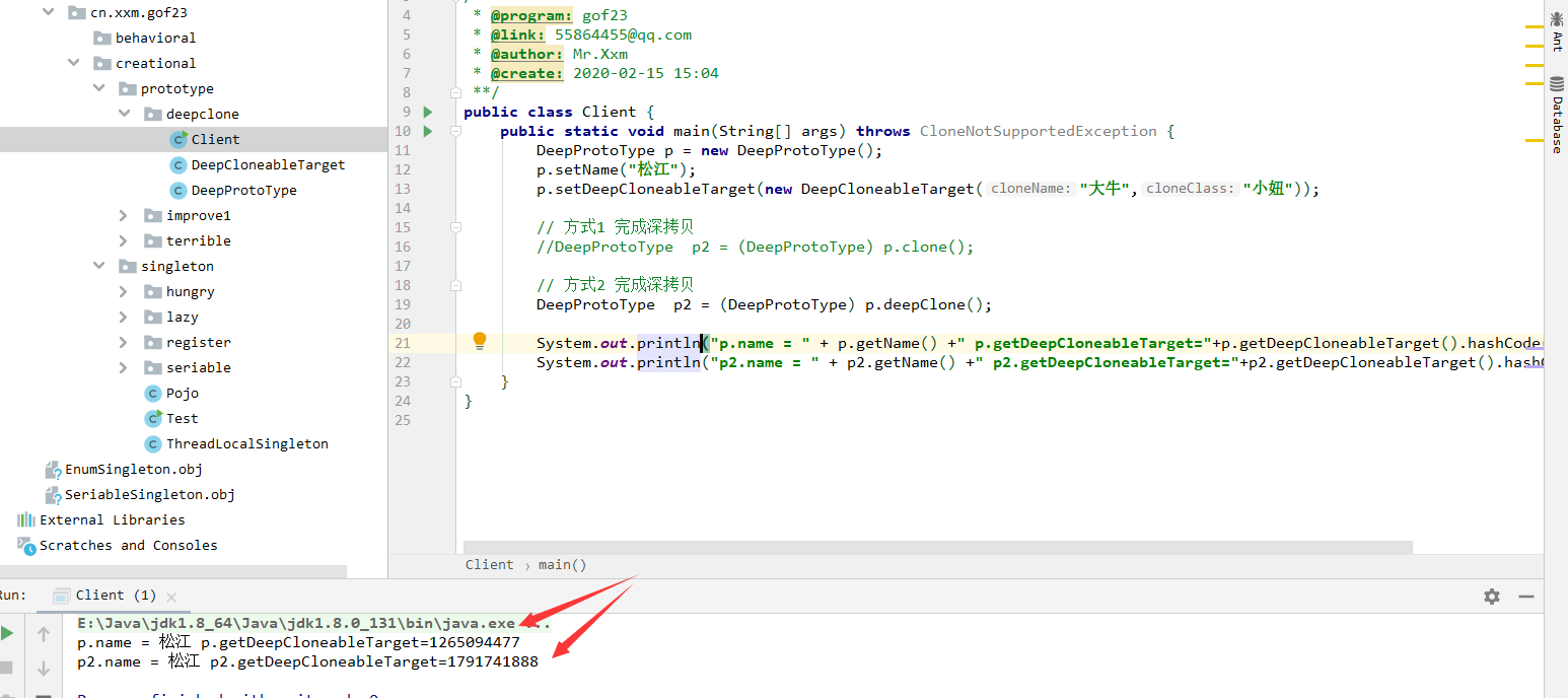System.out.println("p2.name = " + p2.getName() +" p2.getDeepCloneableTarget="+p2.getDeepCloneableTarget().hashCode());21