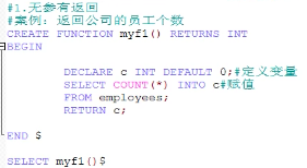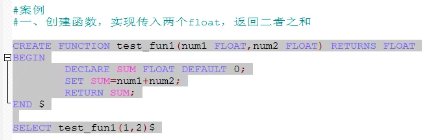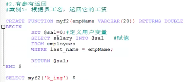 CREATE FUNCTION 函数名(参数列表) RETURNS 返回类型