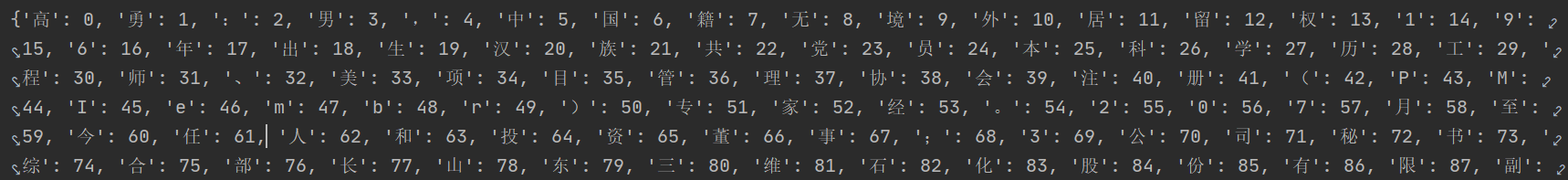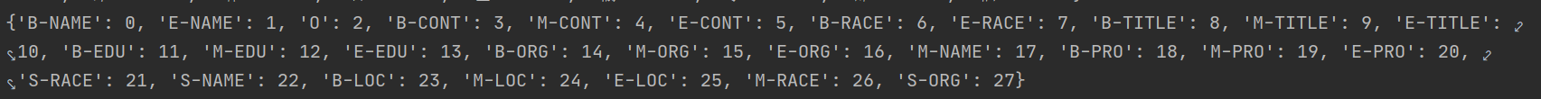 from os.path import join from codecs import open def build_corpus(split, make_vocab=True, data_dir="./ResumeNER"): """读取数据""" assert split in ['train', 'dev', 'test'] word_lists = [] tag_lists = [] with open(join(data_dir, split+".char.bmes"), 'r', encoding='utf-8') as f: word_list = [] tag_list = [] for line in f: # 如果不是换行,就把word tag 分开装入列表中 if line != '\n': word, tag = line.strip('\n').split() word_list.append(word) tag_list.append(tag) # 如果是换行,就把上面的当做一整个列表装入列表中 else: word_lists.append(word_list) tag_lists.append(tag_list) word_list = [] tag_list = [] # 如果make_vocab为True,还需要返回word2id和tag2id if make_vocab: word2id = build_map(word_lists) tag2id = build_map(tag_lists) return word_lists, tag_lists, word2id, tag2id else: return word_lists, tag_lists def build_map(lists: object) -> object: maps = {} for list_ in lists: for e in list_: if e not in maps: maps[e] = len(maps) return maps print("读取数据...") train_word_lists, train_tag_lists, word2id, tag2id = build_corpus("train") print(train_word_lists[:10]) print(train_tag_lists[:10]) print(word2id) print(tag2id) # dev_word_lists, dev_tag_lists = build_corpus("dev", make_vocab=False) # test_word_lists, test_tag_lists = build_corpus("test", make_vocab=False)