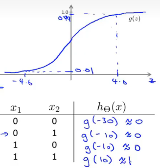 第二幅图是g(z)是一个激活函数,这里的h(x)的值求出来的可以看出来是一个关于逻辑与的结果