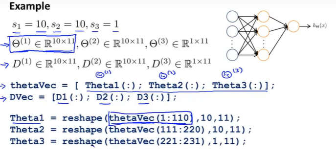 thetaVec是取出Theta中的所有元素,然后全部展开为一个很长的向量也就是thetaVec
