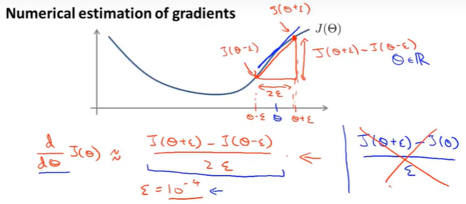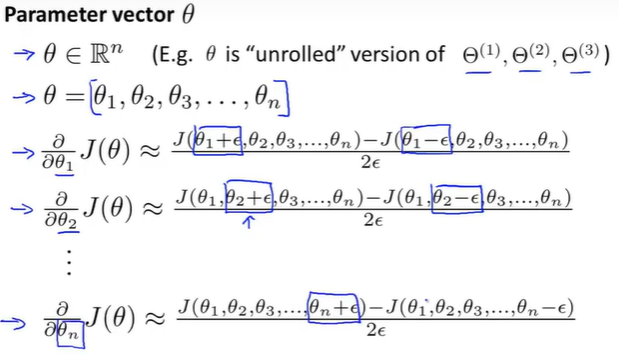 这些等式可以让你从数值上估计代价函数J所关于的任何参数的偏导数