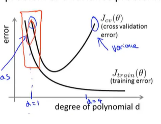 如果是过拟合(高方差)的训练误差会很小但是交叉验证误差会很大远远大于训练误差