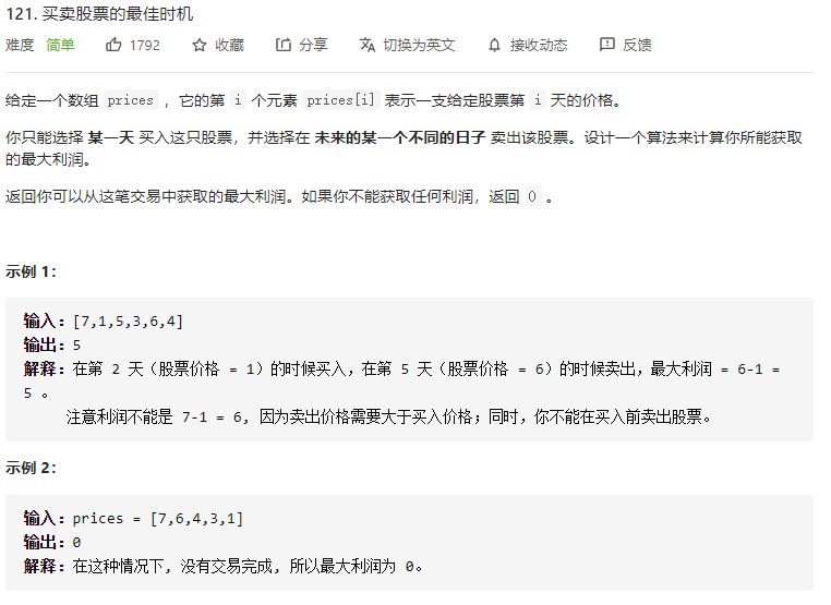 leetcode 买卖股票的最佳时机