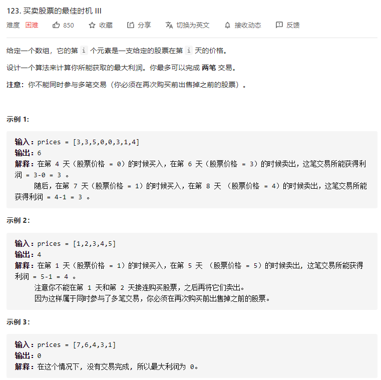 这是道hard题,但只要掌握了股票问题动态规划的大致思路,很容易就能写出初始条件,以及三重dp的状态转移方程,具体可见算法思想中的股票问题。https://www.cnblogs.com/xxsdbk/p/15174494.html