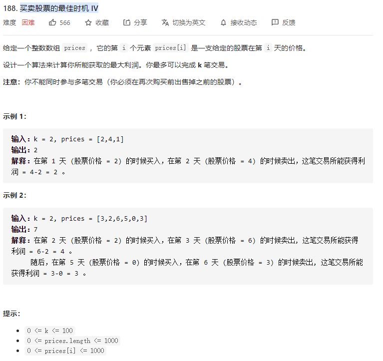leetcode 买卖股票的最佳时机 IV