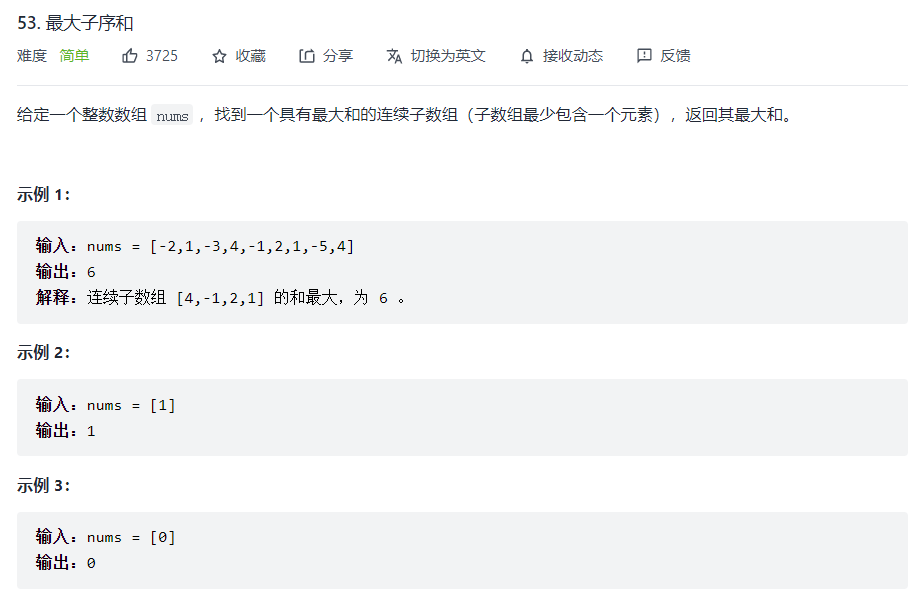 leetcode 数据结构—最大子序和