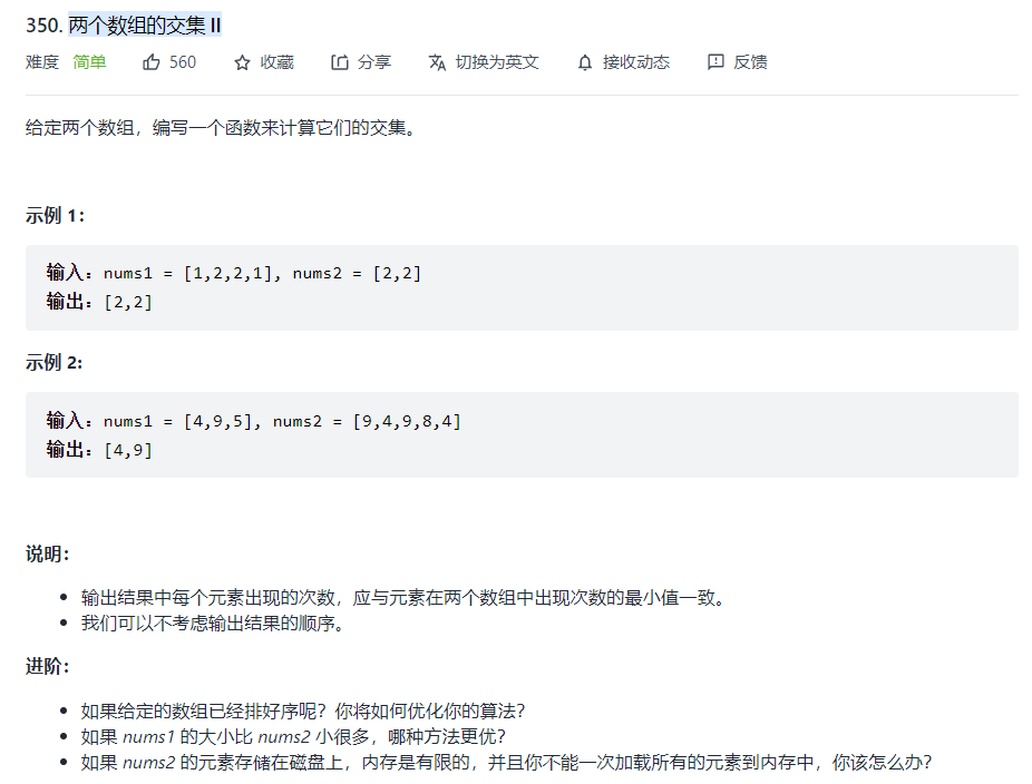 LeetCode 数据结构—两个数组的交集 II