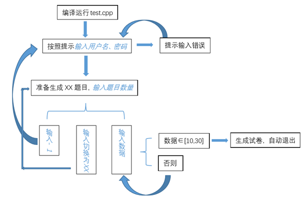 其中包括以下功能:判断用户信息是否存在、切换用户类型、试卷试题查重、重新登陆、生成试卷、以当前时间命名试卷并保存至对应用户文件夹中等。