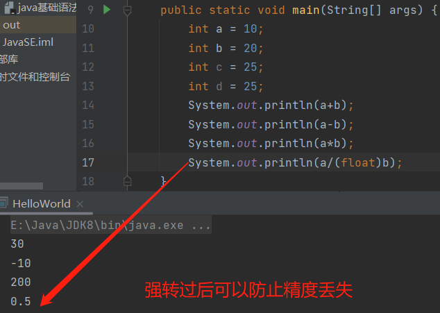 - 算数运算符:+,-,*,/,%(求余,模运算),++(自增),--(自减)