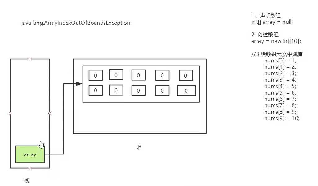 - 数组变量属引用类型,数组也可以看成是对象,数组中的每个元素相当于该对象的成员变量。数组本身就是对象,Java中对象是在堆中的,因此数组无论保存原始类型还是其他对象类型,数组对象本身是在堆中的。