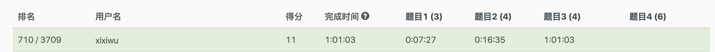 本周周赛的结果: