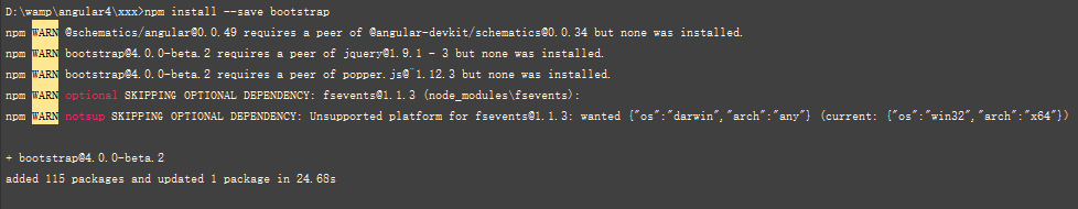 D:\wamp\angular4\xxx>npm install --save bootstrap