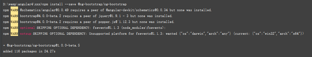 D:\wamp\angular4\xxx>npm install --save @ng-bootstrap/ng-bootstrap
