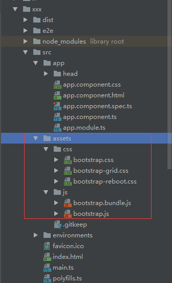 Error: ENOENT: no such file or directory, open 'D:\wamp\angular4\xxx\assets\js\bootstrap.js'
