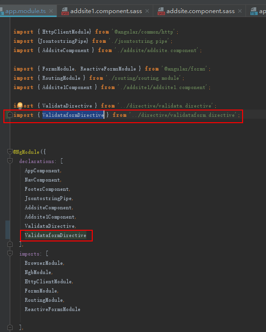 1)然后在需要展示的组件里 project1\src\app\addsite1\addsite1.component.ts 导入文件中的函数