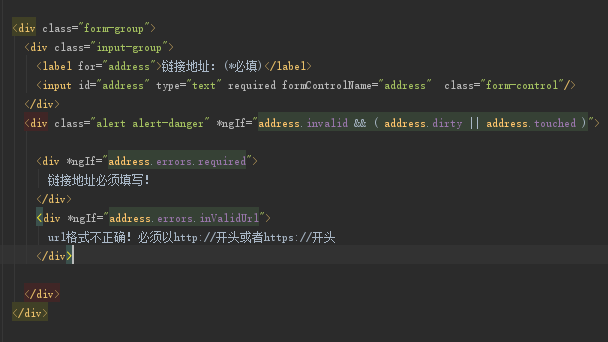 <div class="alert alert-danger" *ngIf="address.invalid && ( address.dirty || address.touched )">