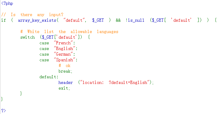 使用了白名单过滤,只允许传 French English German Spanish ,此时可以使用“#”来注释掉后面的内容,因为url中的“#”后面的内容只会与浏览器交互