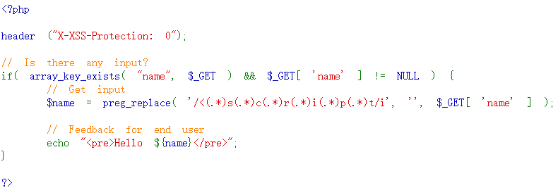 代码使用preg_replace函数将任何形式的<script>标签都过滤掉了,但没有对其他标签进行过滤