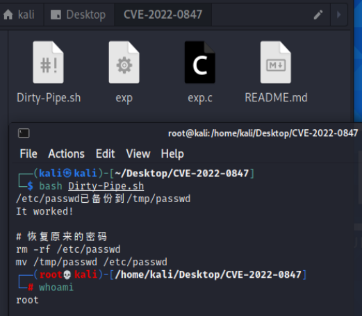 将文件拖到kali中,在Dirty-Pipe.sh文件所在目录开启终端