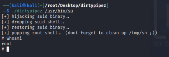 注:如果使用wget https://haxx.in/files/dirtypipez.c出现403,请检查网络。或者直接访问https://haxx.in/files/dirtypipez.c,将页面内容拉下来写入.c文件,再手动拉到kali中