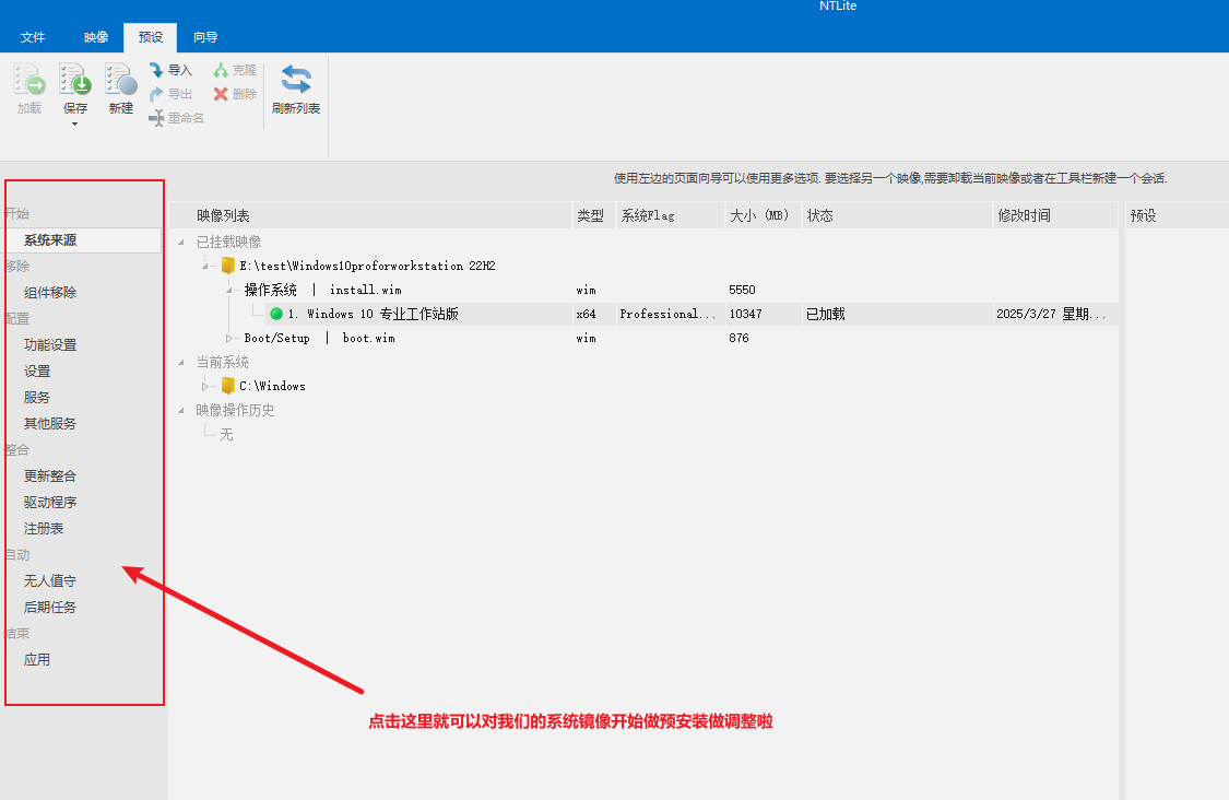 点击这里就可以对我们的系统镜像开始做预安装的调整啦