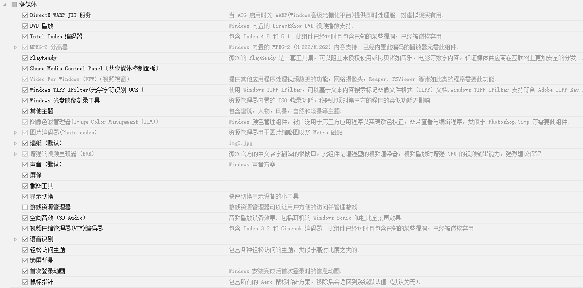 注意:我这里取消勾选,都是我个人认为不需要的,保留下来的都是我个人认为,并且日常生活和工作中必须需要的,所以这里我只展示我取消安装的,如果大家有不同看法,或者不同意见,可以和我交流。