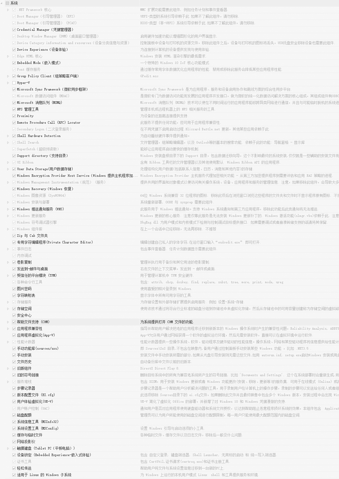 组件移除,就是卸载系统预安装的各种软件啦,什么应用商店、反馈中心、Groove音乐、画图3D、混合现实门户..........等等等等,所以的关于软件的操作都是在这里操作的哦