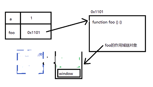 运行到这个函数时,它会创建一个foo的作用域链对象。然后存入一个栈里,这个栈底层永远是window.
