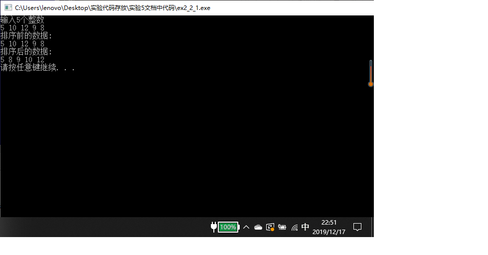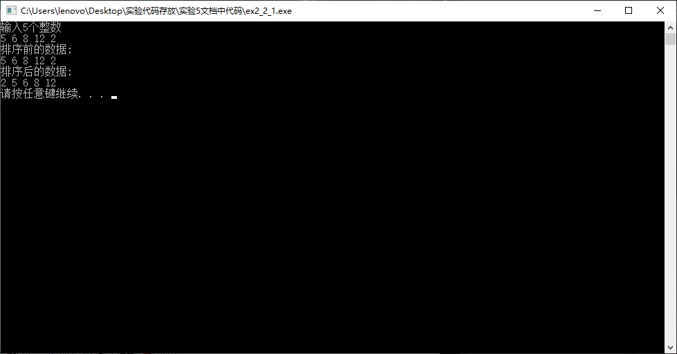 // 示例: 使用选择法排序对一组整数由小到大排序